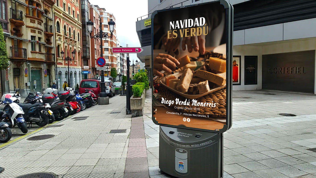 La campaña “Navidad es Verdú” se desarrolló para Diego Verdú Monerris, histórico obrador de turrones y dulces de Oviedo fundado en 1878. El objetivo fue reforzar su presencia local durante la campaña navideña, actualizando su comunicación sin perder el carácter artesanal que distingue a la marca.