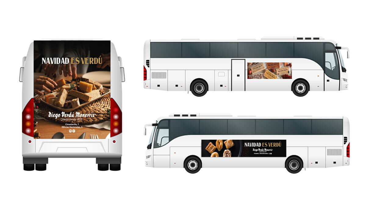 El concepto creativo parte de un mensaje sencillo y potente: “Navidad es Verdú”, una declaración que vincula directamente la celebración con el producto y la tradición. A partir de esta idea se diseñó una estrategia multicanal con presencia en soportes exteriores (mupis urbanos, autobuses y marquesinas), medios digitales y redes sociales.